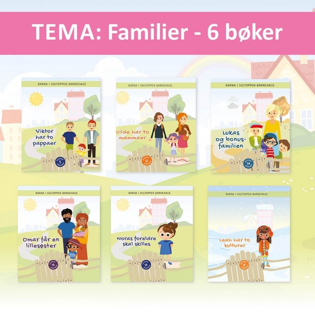 Med titler som “Viktor har to pappaer”, “Vilde har to mammaer”, “Lukas og bonusfamilien”, “Omar får en lillesøster”, “Noras foreldre skal skilles” og “Leah har to kulturer”, gir serien et inkluderende og barnevennlig utgangspunkt for samtaler om familieformer, endringer og kulturell tilhørighet. Bøkene skaper rom for refleksjon – og bidrar til at alle barn kan kjenne seg igjen i fellesskapet.