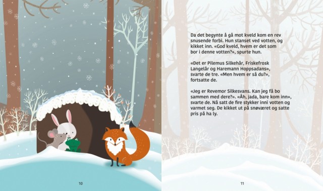 En liten vott blir et varmt hjem for mange dyr i skogen. Først kommer én, så to, så tre – helt til det nesten ikke er plass til flere! Et koselig eventyr som inviterer til telling, gjentakelser og mye moro under høytlesningen.