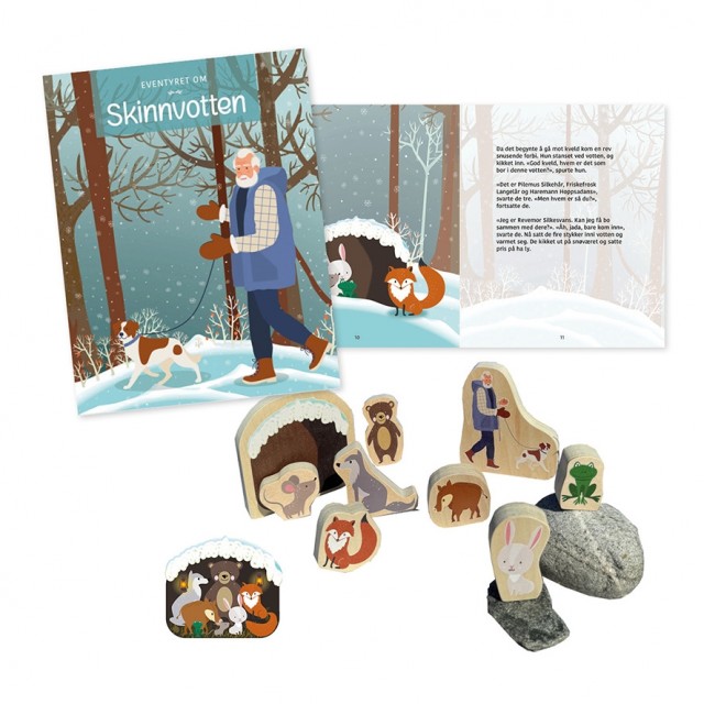En liten vott blir et varmt hjem for mange dyr iskogen. Først kommer én, så to, så tre – helt til det nesten ikke er plass til flere! Et koselig eventyr som inviterer til telling,gjentakelser og mye moro under høytlesningen.