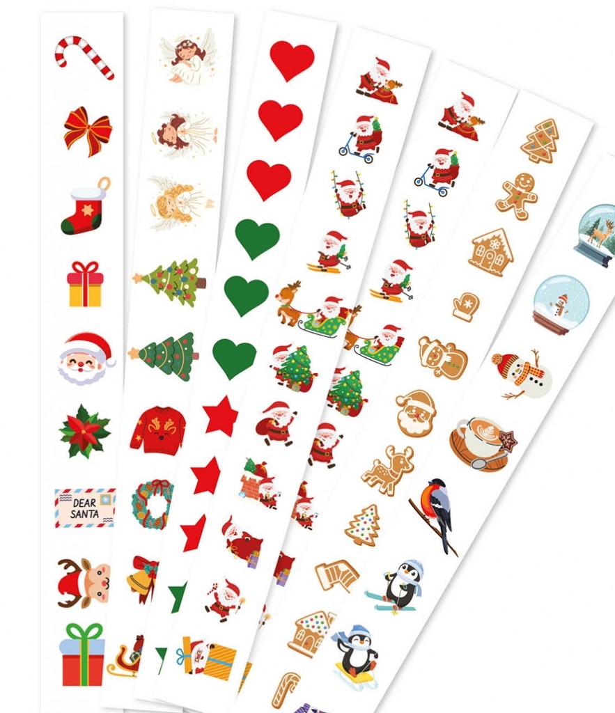Spennende klistremerkepakke som inneholder: Julemix 1, Julemix 2, Hjerter og stjerner, Nissemix 1, Nissemix 2, Pepperkaker, Vinter