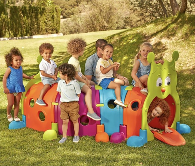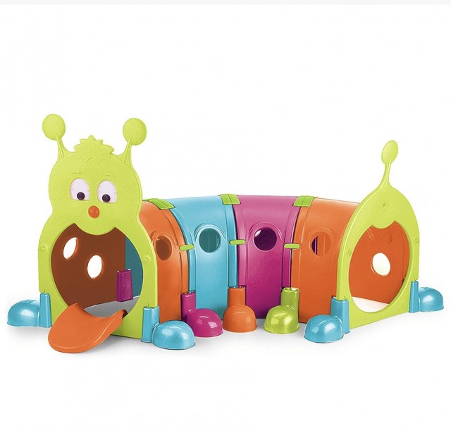 Spennende krabbetunnel formet som en søt larve! Modulene kan settes sammen på den måten man ønsker. Kjøper man flere larver kan de settes sammen til en lengre versjon. Denne pakken inneholder ansiktsmodul, haleparti, føtter og 4 tunneldeler.