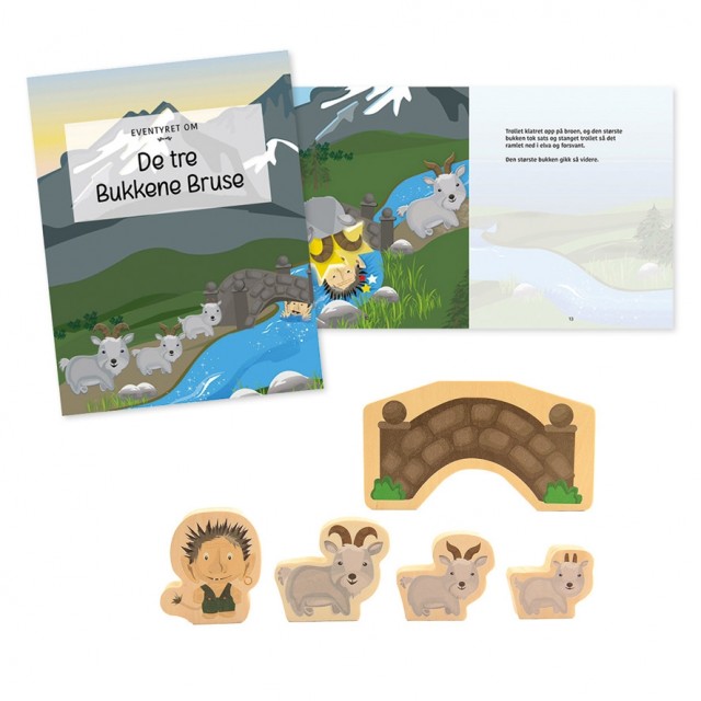Denne pakken med konkreter inneholder 3 bukker, 1 troll og 1 bro, totalt 5 klosser.
