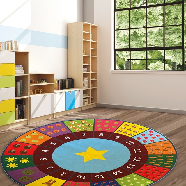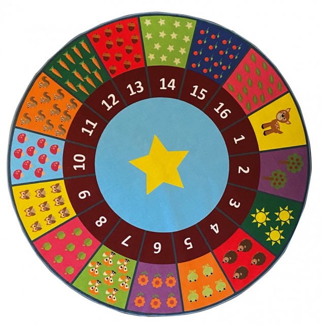 Barn elsker å telle! Dette herlige teppe viser tallene 1-16, samt ulike figurer med riktig antall til hvert tall. Rammeplanen sier noe om at barnehagen skal synliggjøre sammenhenger og legge til rette for at barna kan utforske og oppdage matematikk i hverdagen. Dette teppe innbyr til lek og læring med alle sine fine figurer og farger. Her kan barna bli kjent med tall, mengde og telling – samtidig som de kan få inspirasjon til å utvikle andre leker. Her er det så mye læring bare på teppet! Dette kan brukes innenfor flere av fagområdene til rammeplanen, og kanskje være et godt utgangspunkt for videreutvikling av språkkompetansen.