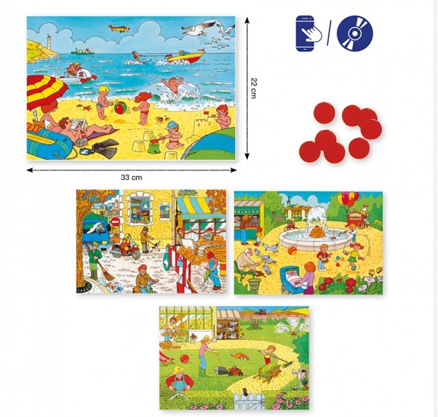 Barna lytter til lyder fra ulike steder og miljøer, og kobler lydene til riktig bilde. Spillet inviterer til samtale om hva som skjer i de forskjellige miljøene, og hjelper barna med å utvikle både lytteferdigheter og begrepsforståelse.