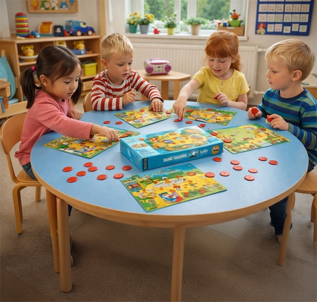 Spillene skaper engasjement og nysgjerrighet, og gir gode muligheter for samtale om hva barna hører. Aktivitetene passer godt i små grupper eller språkgrupper, og bidrar til å utvikle lytteferdigheter, oppmerksomhet og begrepsforståelse.